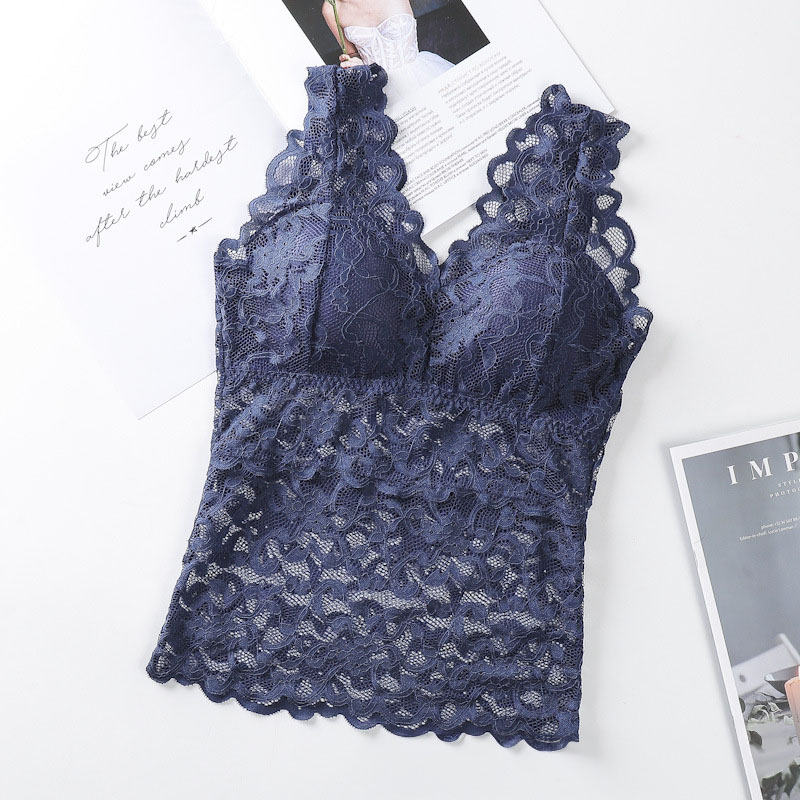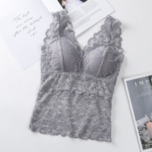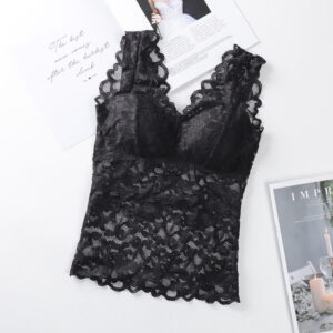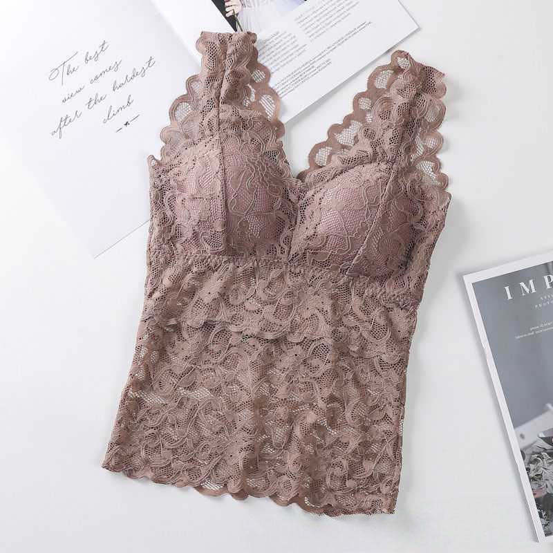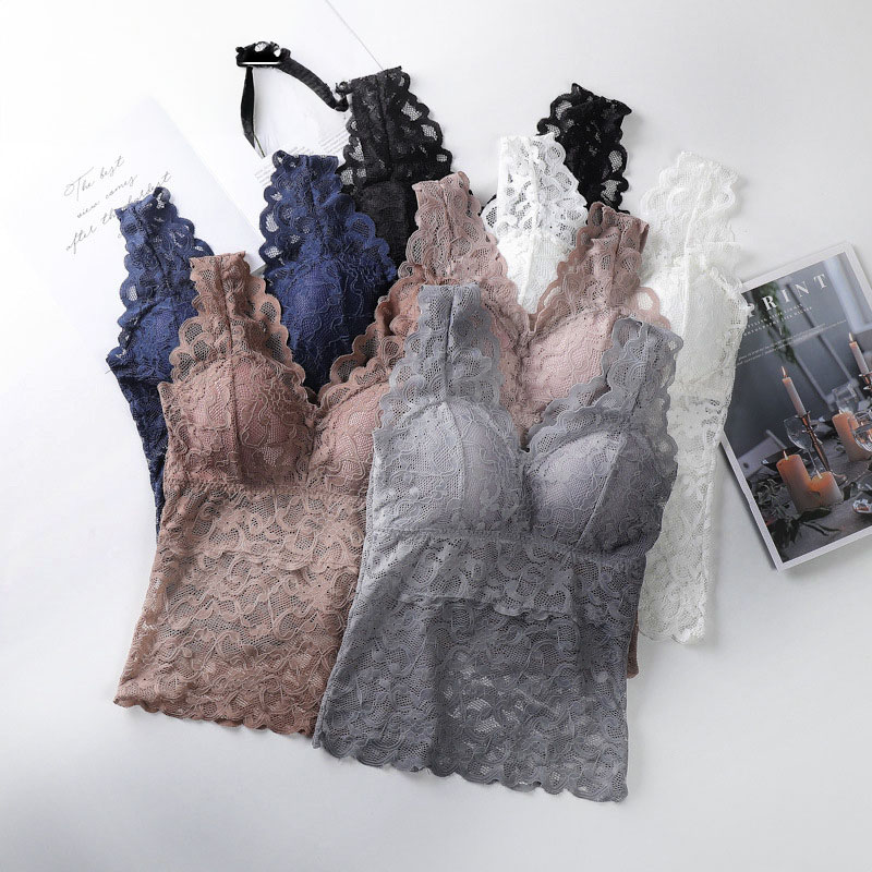 Long V-neck wide shoulder strap lace backless anti-exposure camisole with chest pad and no underwire tube top bra